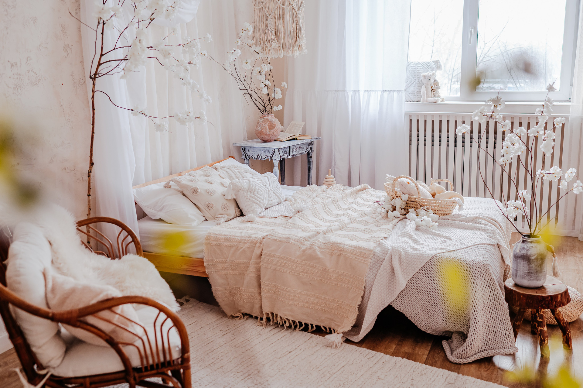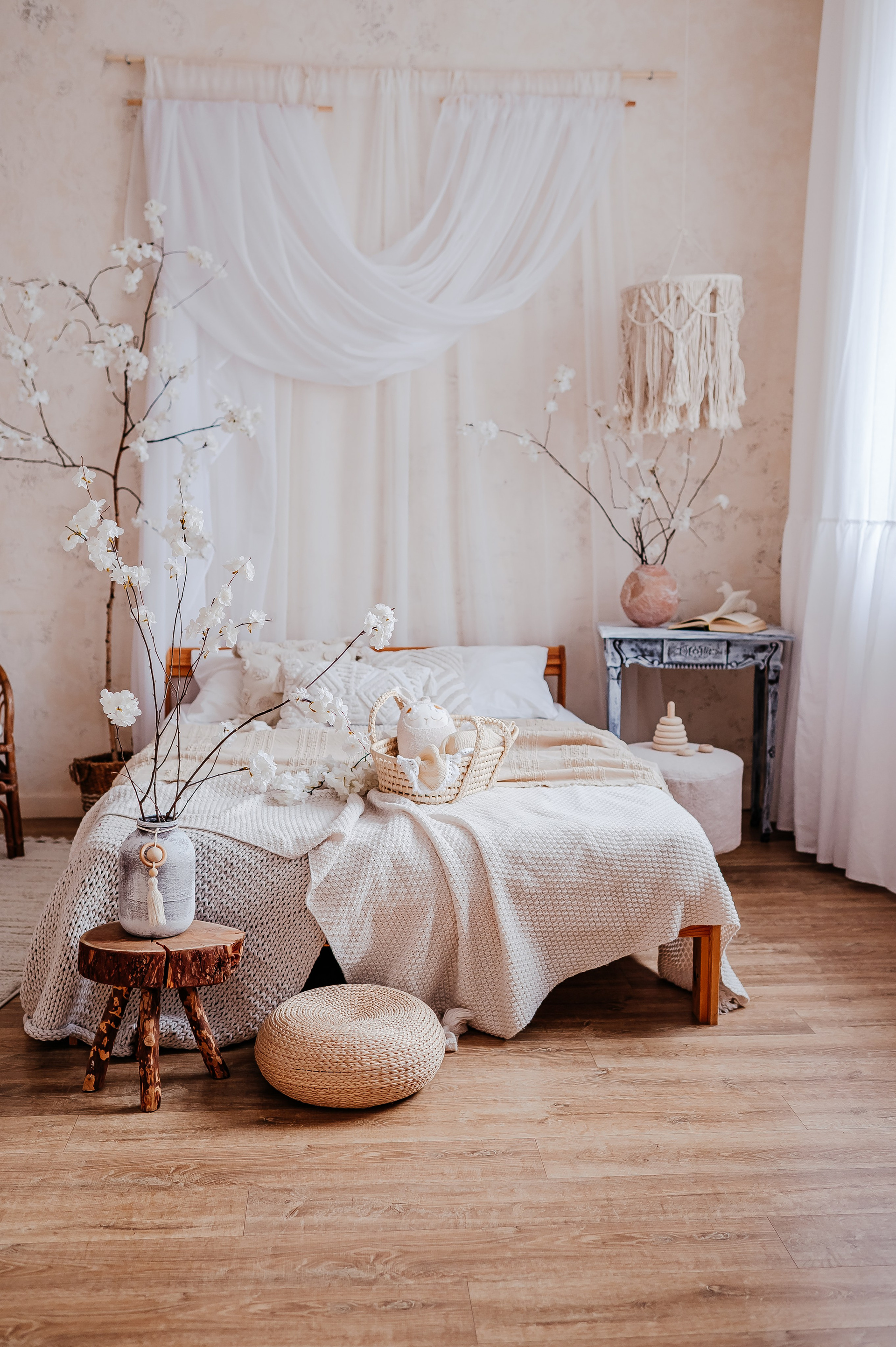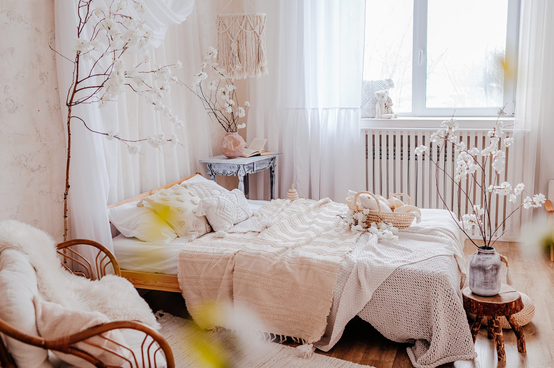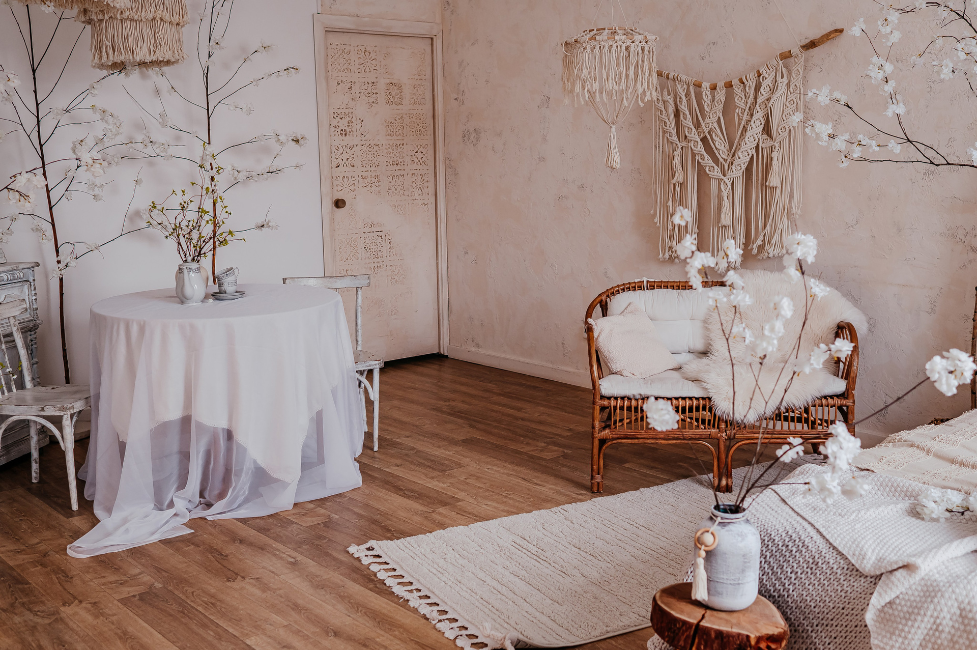 Уютный небольшой зал с кроватью и циклорамой.