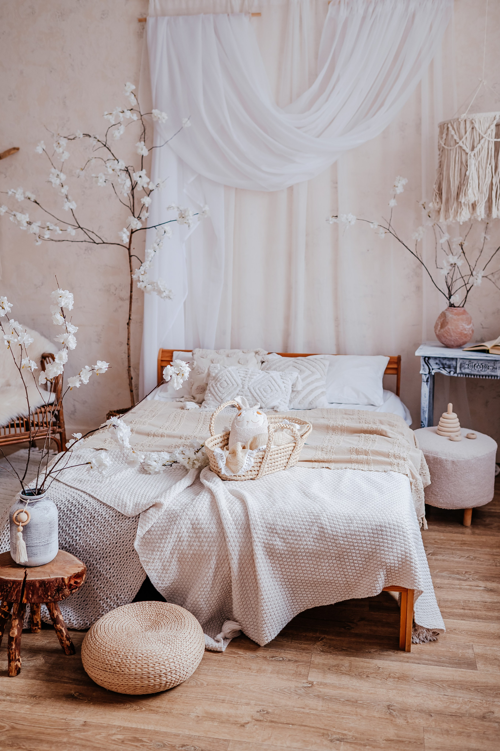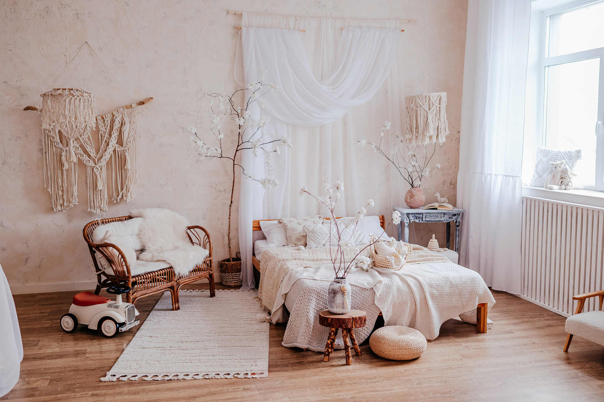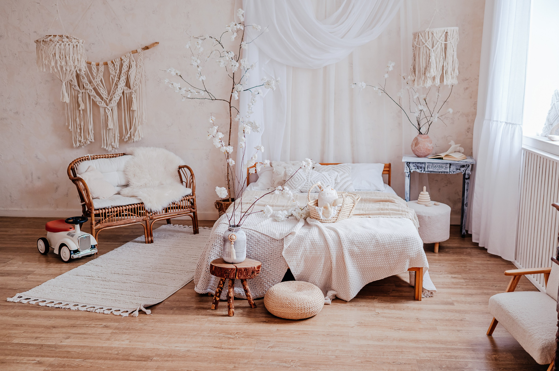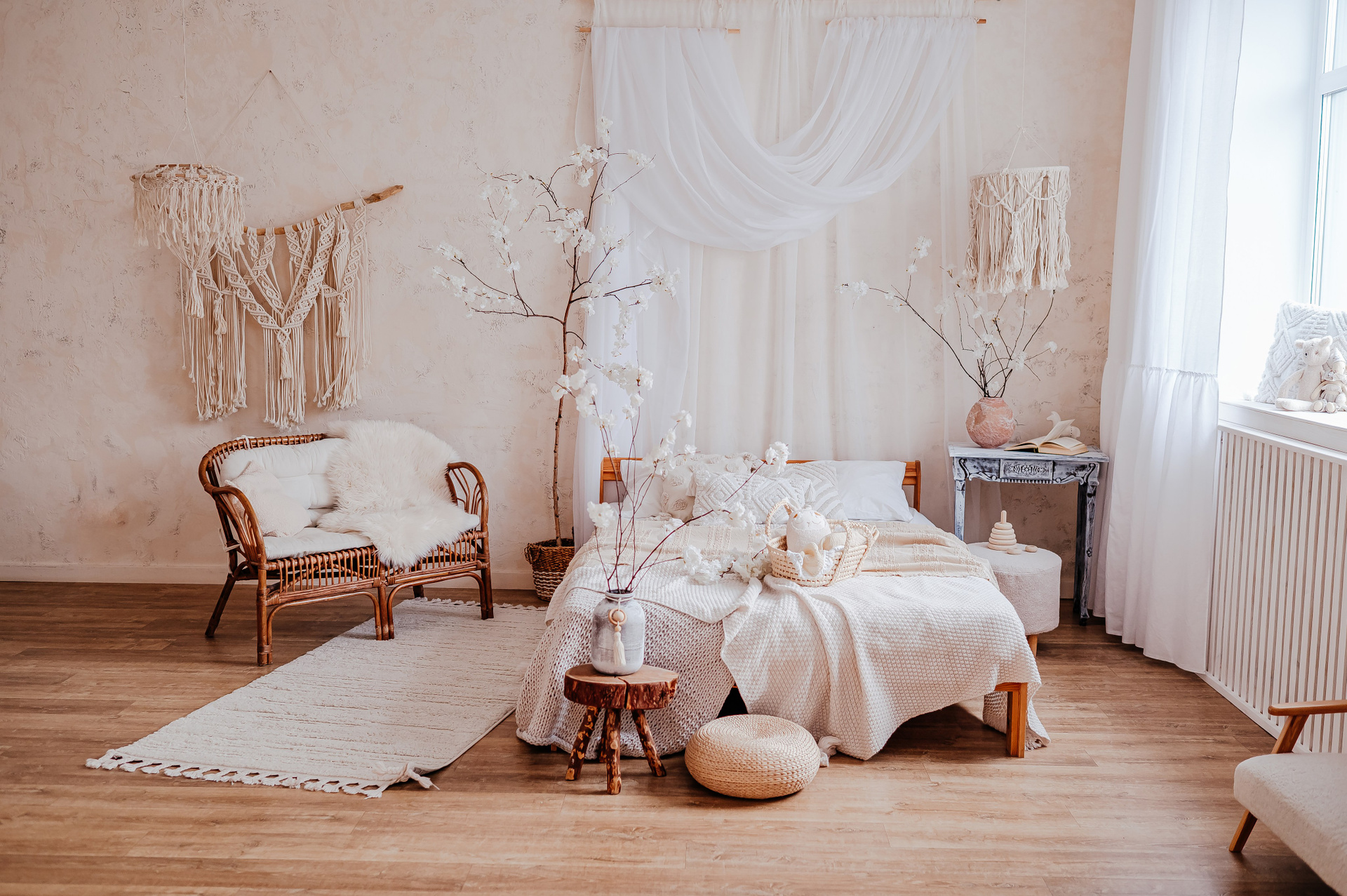 Уютный небольшой зал с кроватью и циклорамой.