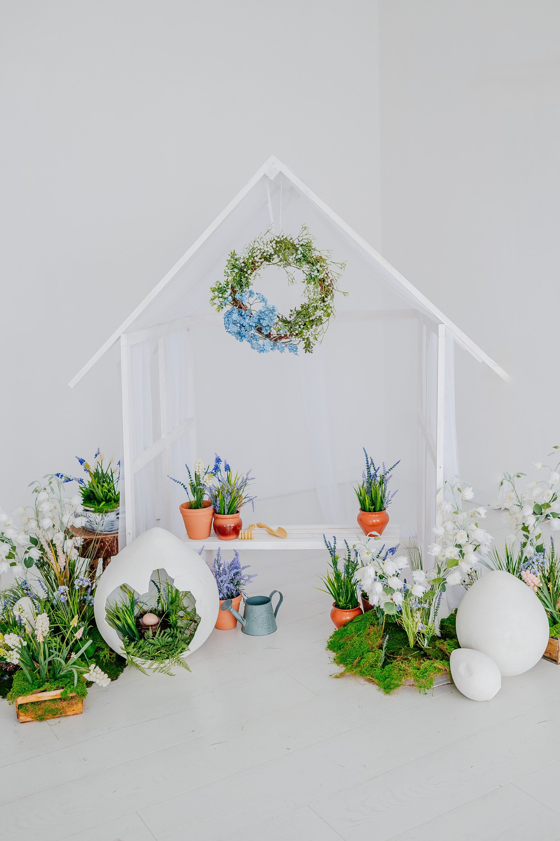 Для установки мини фотозон имеется специальный подиум с деревянными досками темного и белого цвета.