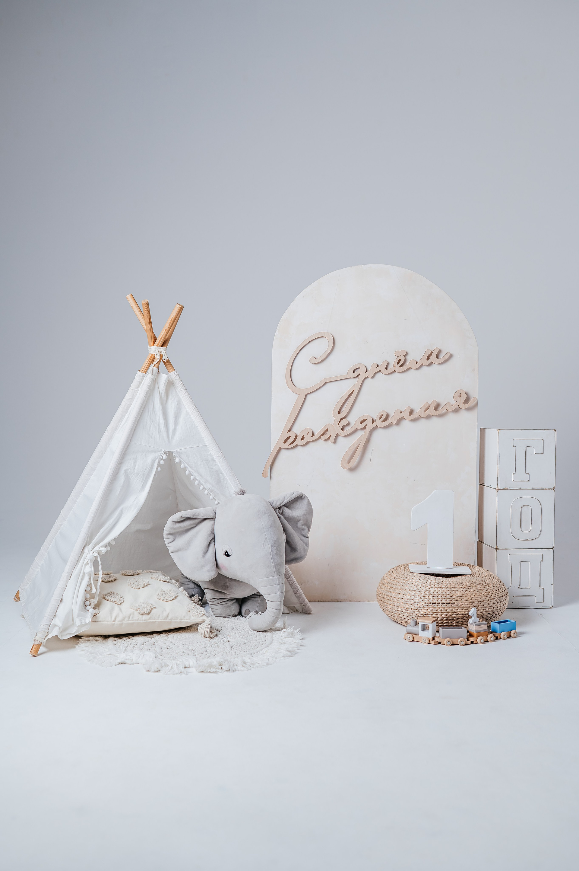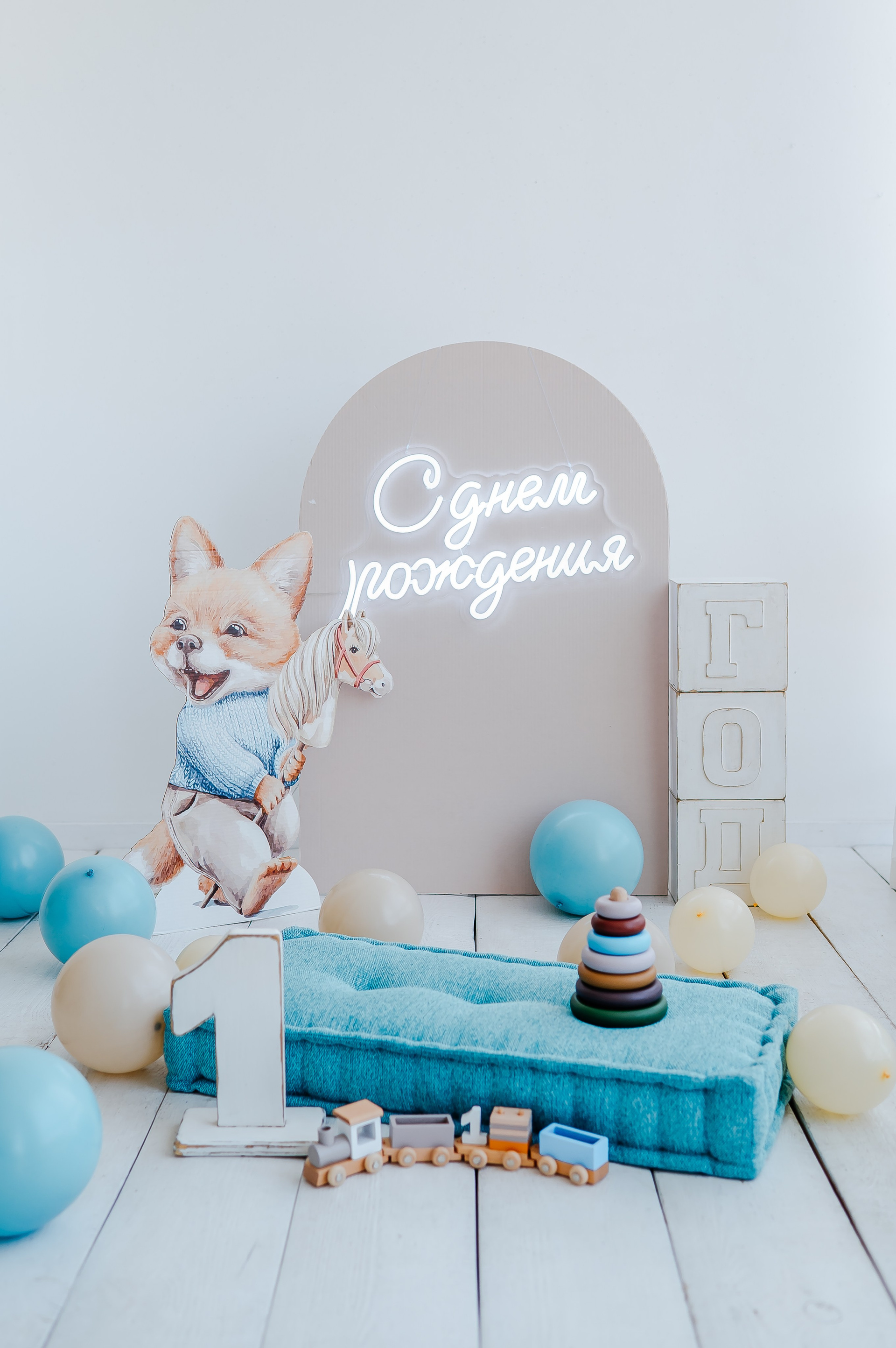 В зале Погремушка мини фотозона устанавливается на циклораму.